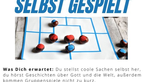 Was dich erwartet? Du stellst coole Sachen selbst her, du hörst Geschichten über Gott und die Welt, außerdem kommen Gruppenspiele nicht zu kurz.